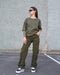 - The waistband is separate and fastened with a metal button. Additional inserts of elastic webbing on the waistband for comfort while wearing;